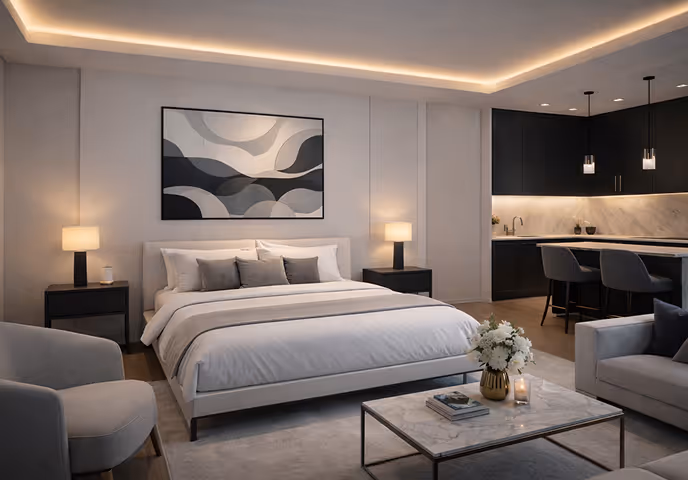 Timeless Luxury Interiors für private Residenzen, Ferienimmobilien und gewerbliche Räume. Ruhig, elegant und architektonisch durchdacht.